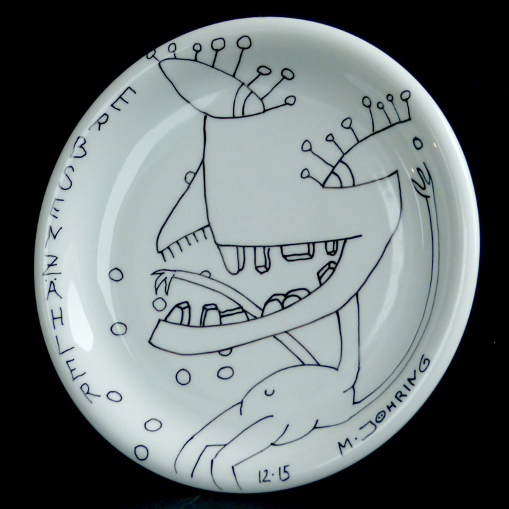 Die zum größtenteils gebrauchten Porzellan-Fundstücke werden individuell bemalt und sind damit Unikate. Wie auch bei meinen Malereien auf Leinwand leben viele dieser Upcycling-Kunstprodukte von der Kombination der Bild- und Textbotschaften.
